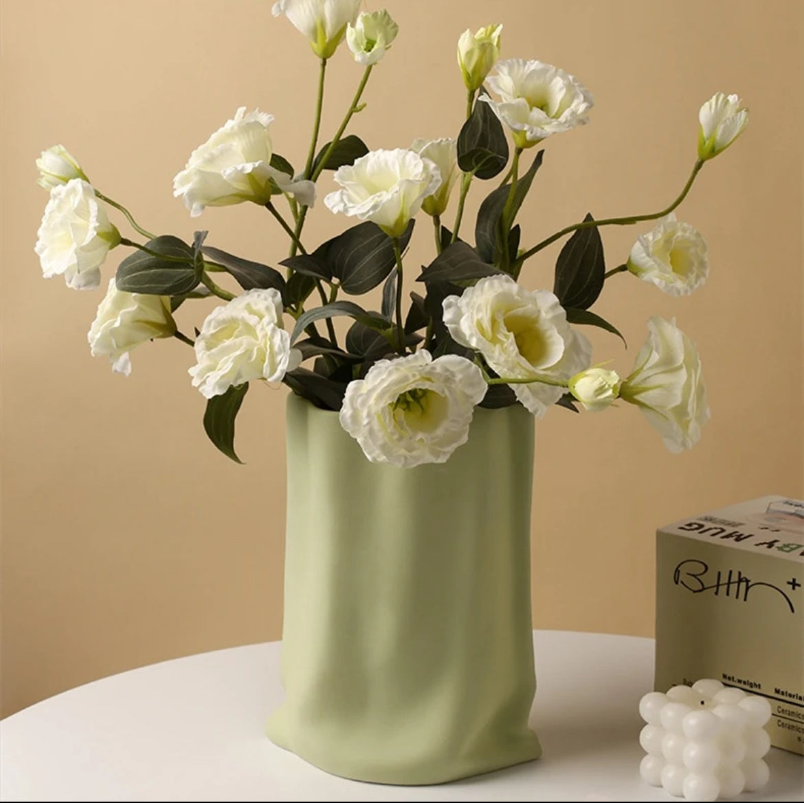 The Hand Pinched Textured Paper Bag in Cheese Matcha is a beautifully crafted, eco-friendly accessory that combines functionality with artisanal charm. Made from high-quality textured paper, the bag features a unique hand-pinched design that gives it a distinctive, organic look. The Cheese Matcha color is a warm, muted blend of soft, creamy beige with a subtle greenish hue, evoking the earthy tones of matcha green tea and the richness of cheese. This sophisticated, nature-inspired color palette makes the bag versatile and elegant, suitable for both casual and more refined occasions.