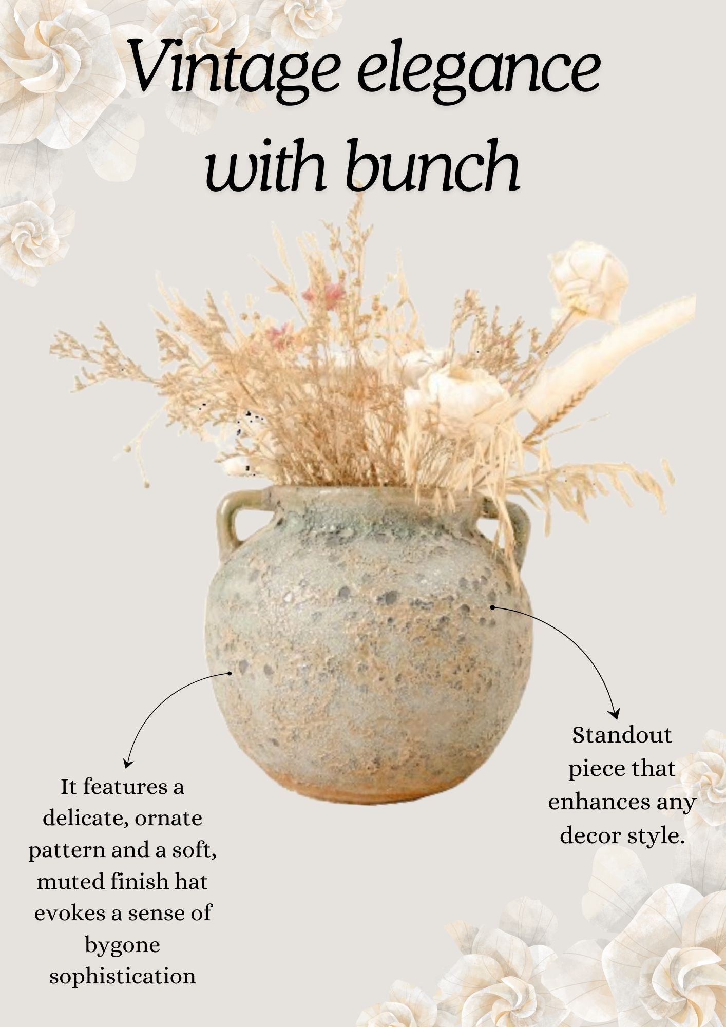 The Vintage Elegance Vase is a beautifully crafted piece with an intricate, vintage-inspired design. Made from high-quality ceramic ,t it features a delicate, ornate pattern and a soft, muted finish hat evokes a sense of bygone sophistication. The vase’s elegant silhouette and refined detailing make it a standout piece that enhances any decor style.